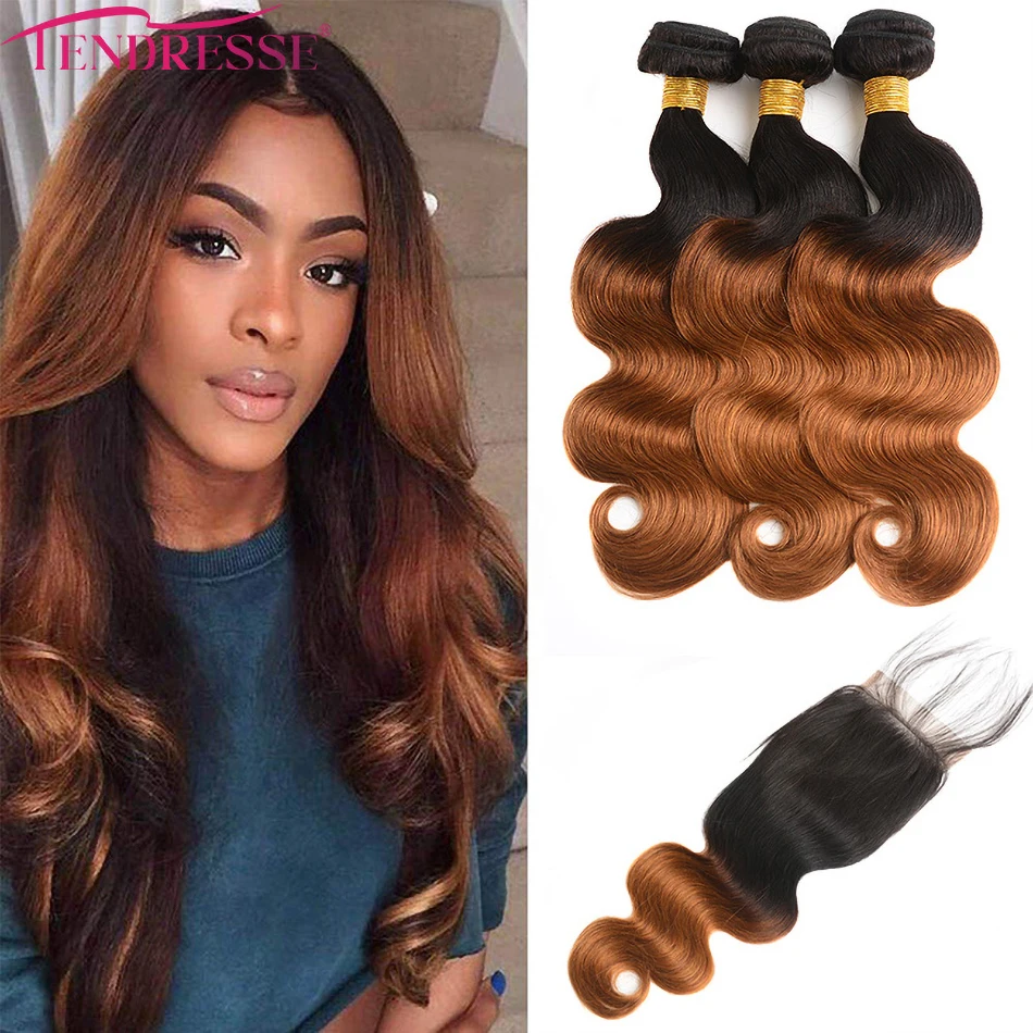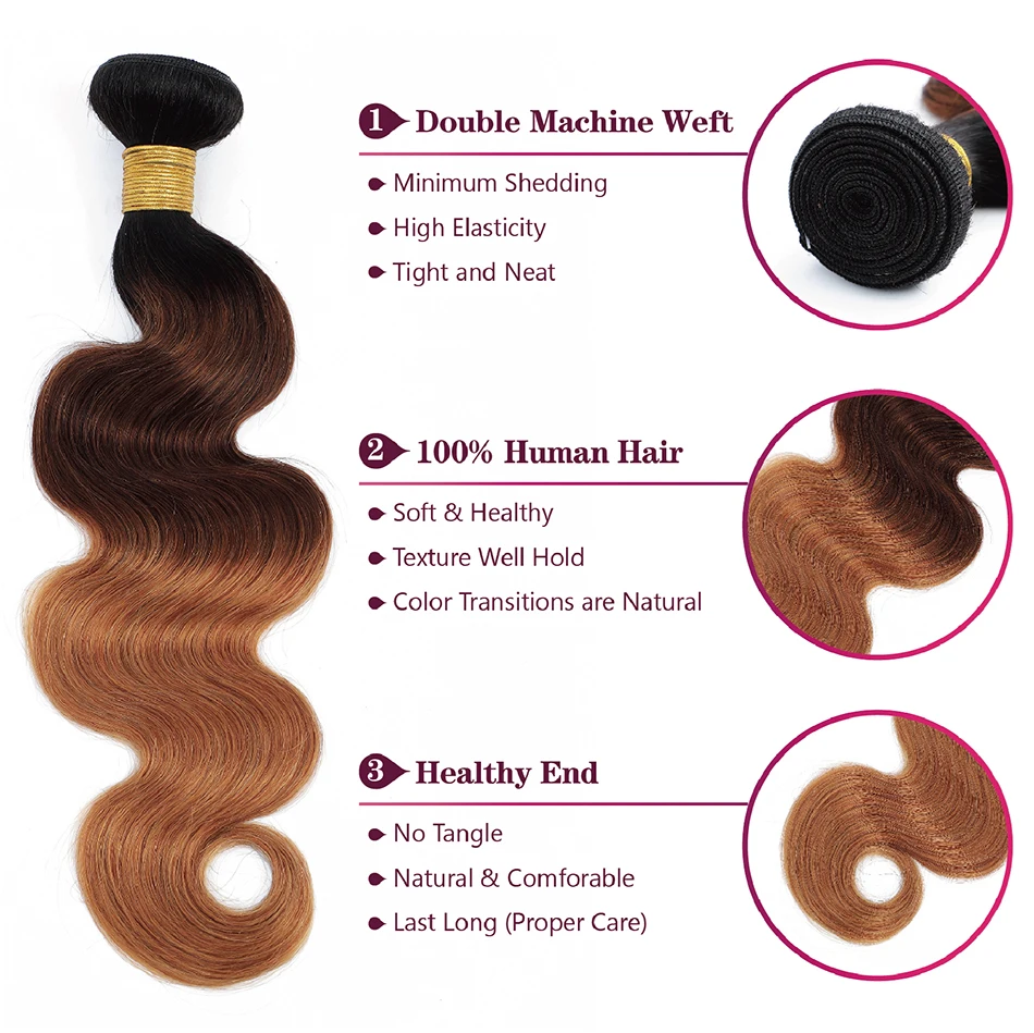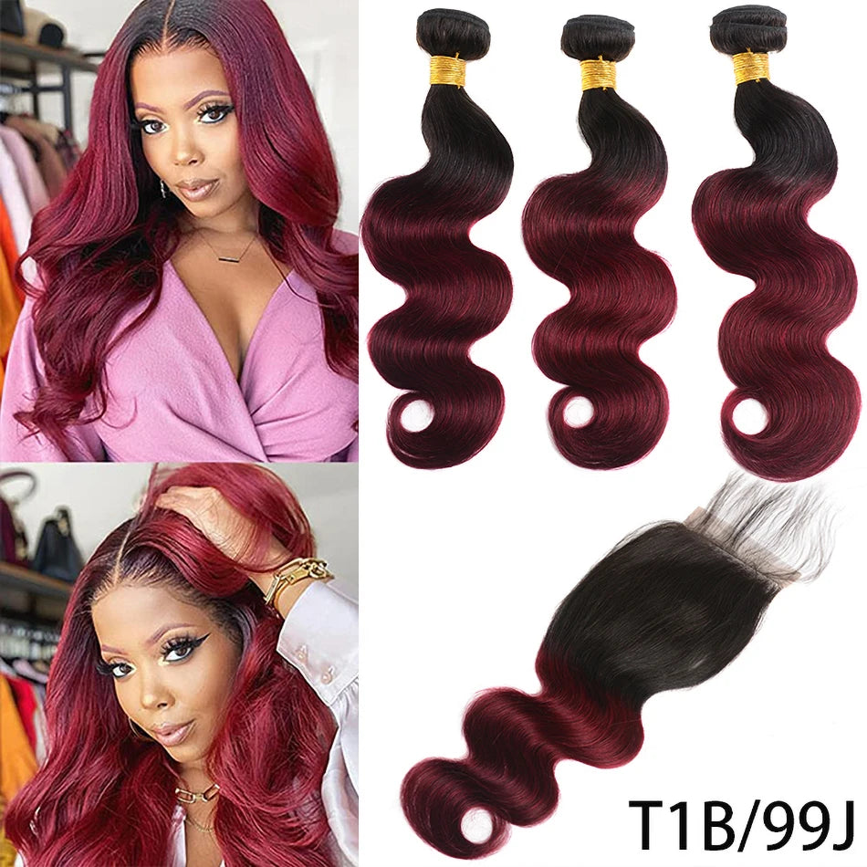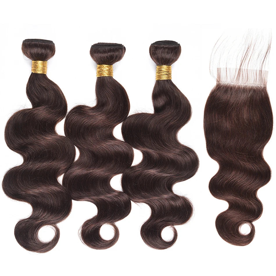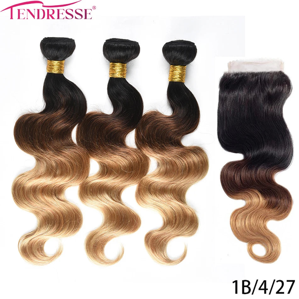 100% Human Hair Weave Bundles with Lace Closure Ombre Vietnames Hair Blond Brown Body Wave 3 Bundles With 4x4 HD Lace Closure