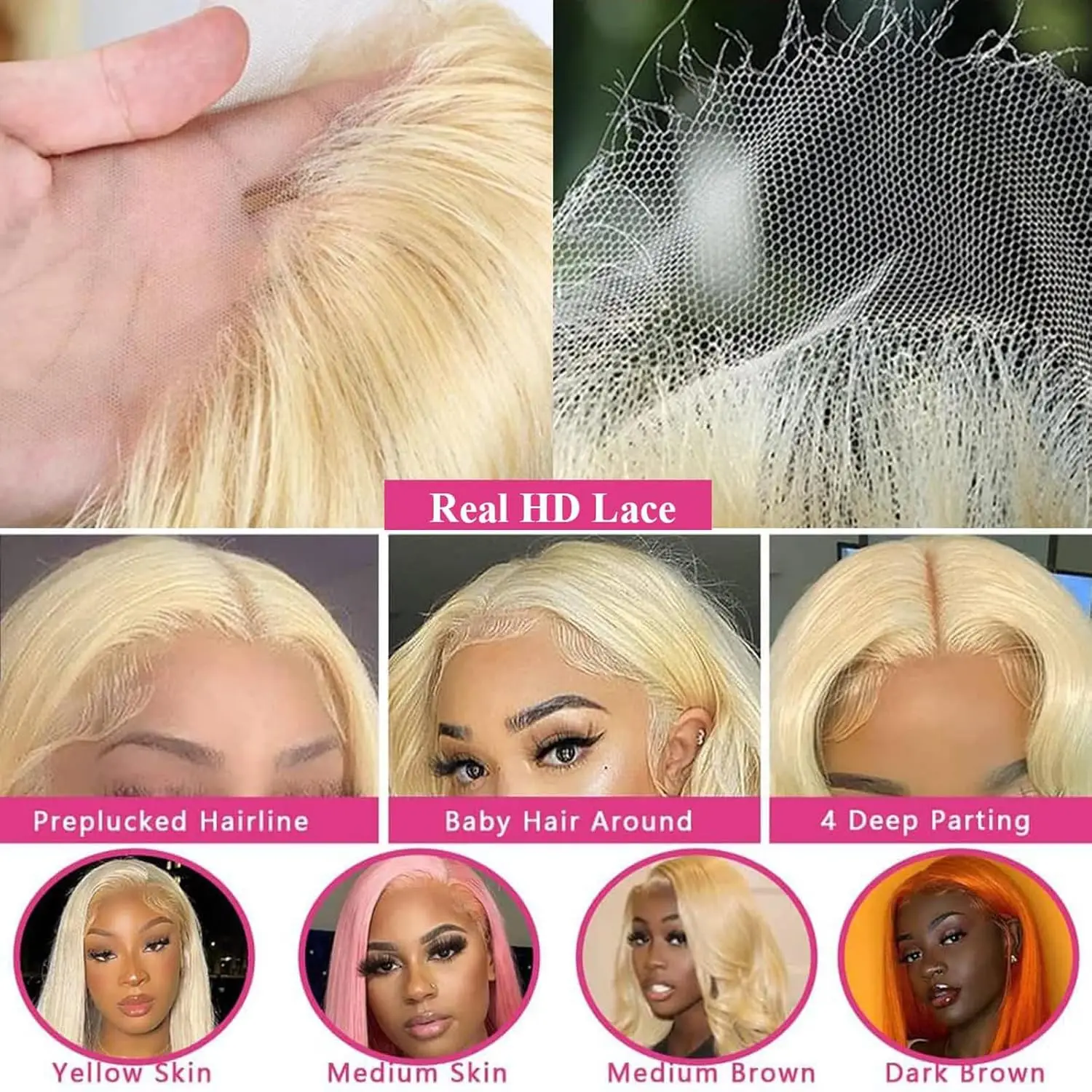 Lace Materials: Hd Lace Wig, Undetectable Lace, Super Melted Into All Skins, More Natural Realistic
