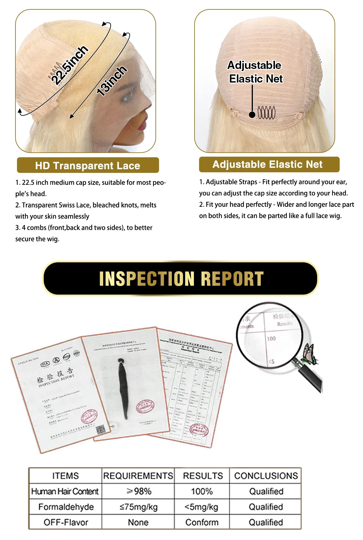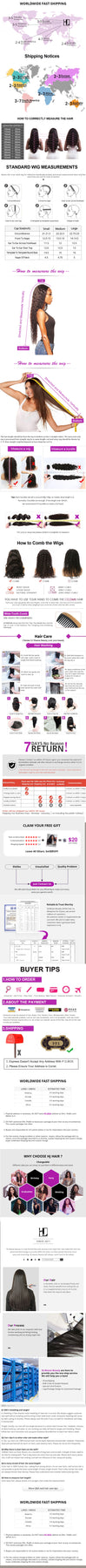 Hair Material: 100% Human Hair Wigs, No Tangling, No Shedding, Can Be Dyed, Straightened, Bleached, And Restyled As Your Own HairHair