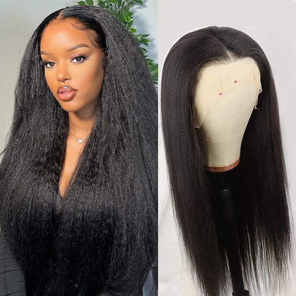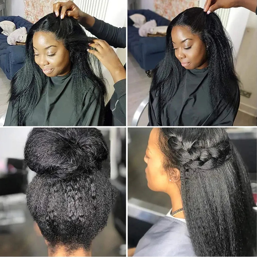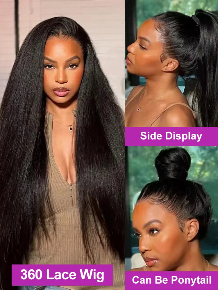 300% Density Kinky Yaki Straight 13x6 HD Lace Front Human Hair Wigs 30 40 Inch 360 Full Lace Frontal Wig for Women Preplucked
