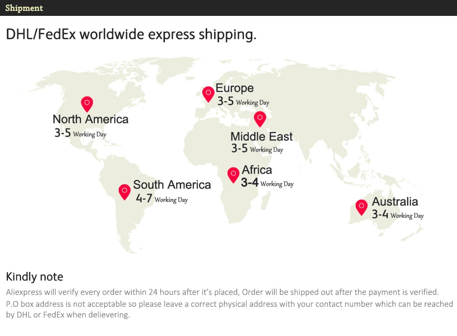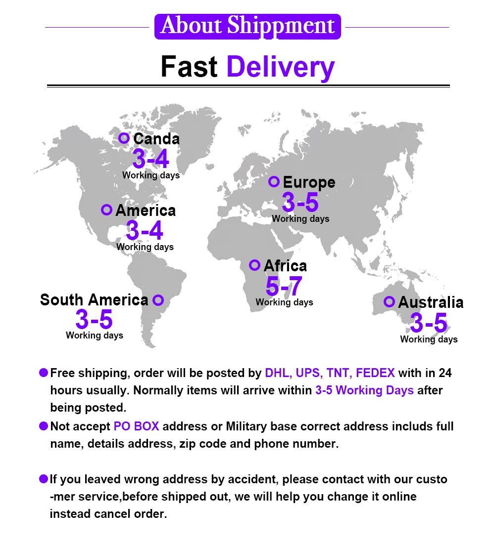 Shipping Time:3-5 Days worldwide Free Shipping.