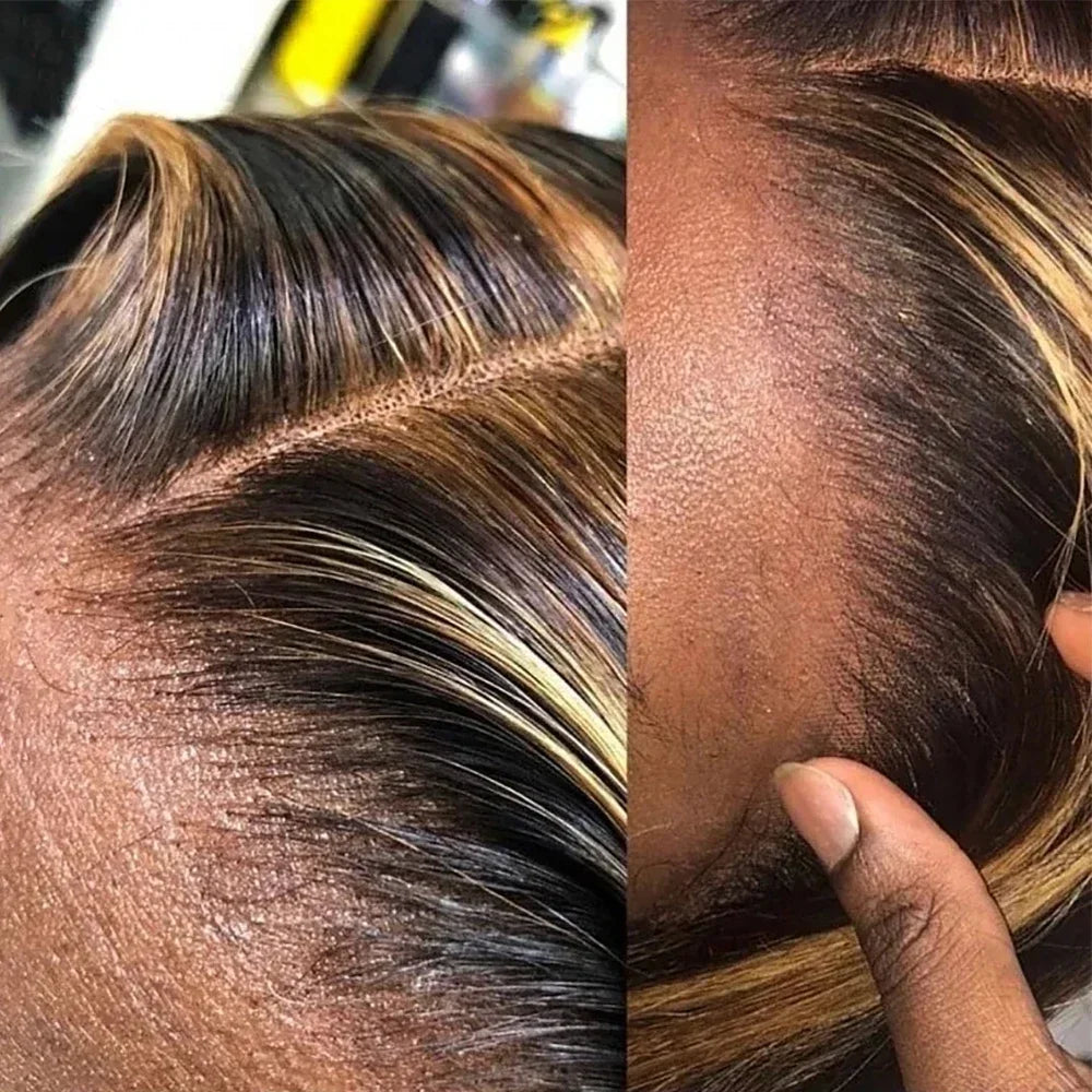 Highlight Ombre 13×4 Lace Front Wigs 5/27 Honey Blonde Human Hair for Black Women