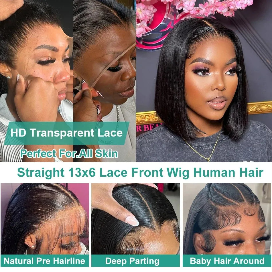 13x4 Straight Bob Wig Human Hair 100% Glueless Wear and Go HD Lace Wigs Human Hair Preplucked Short Human Hair Lace Frontal Wigs
