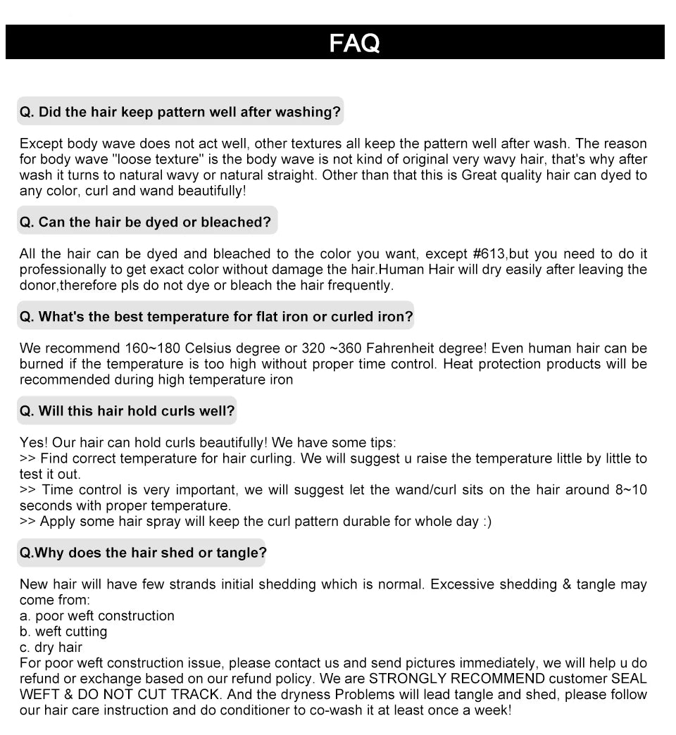 - Density & Color: 180% Density, full and thick, 10A grade. Natural color, can be dyed and bleached.